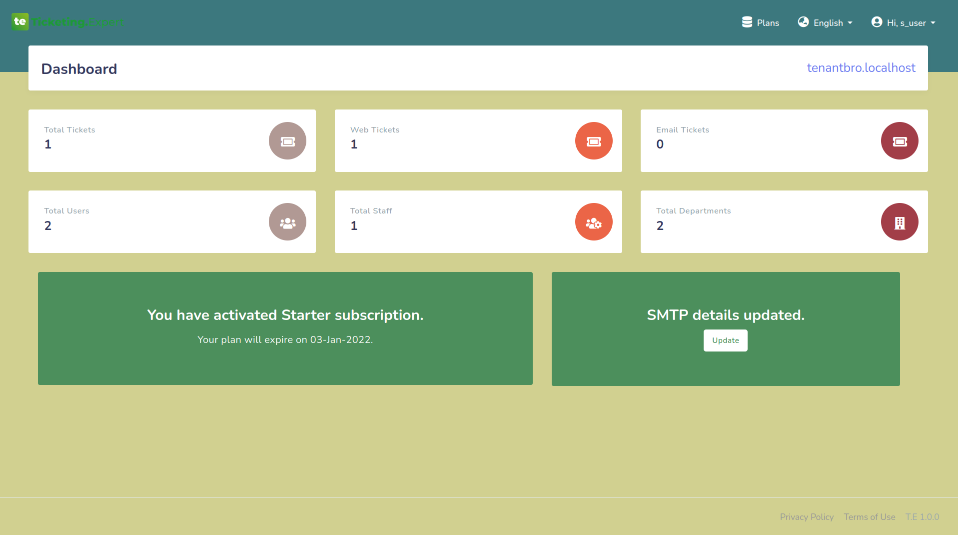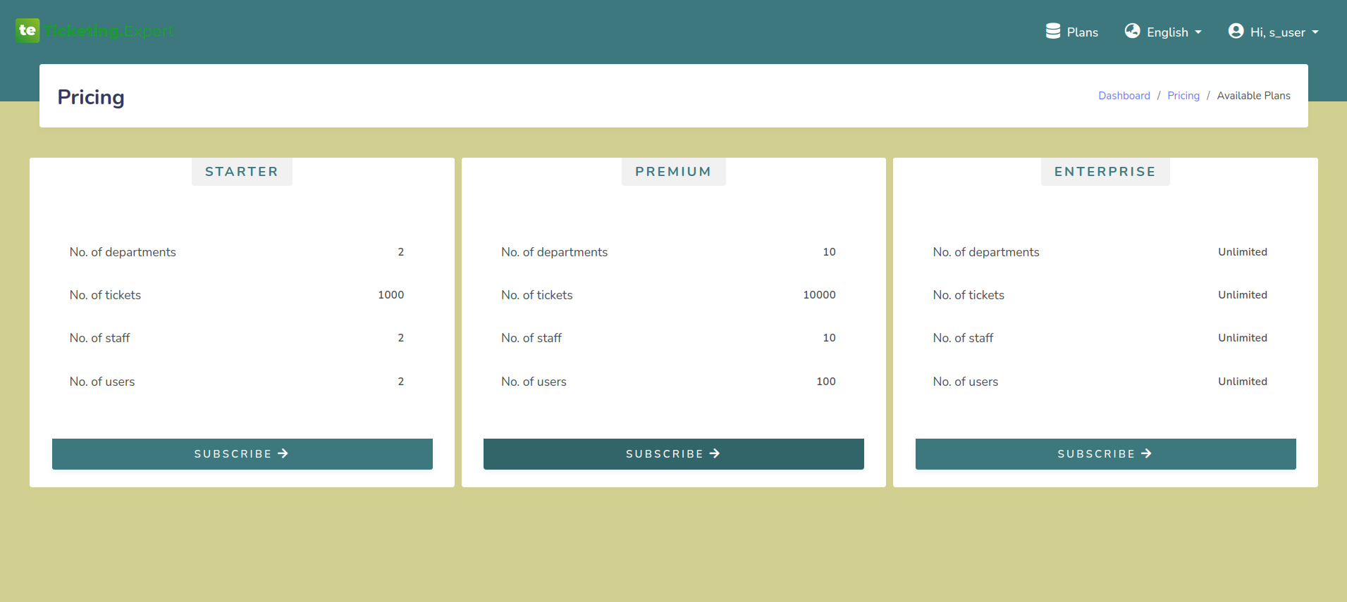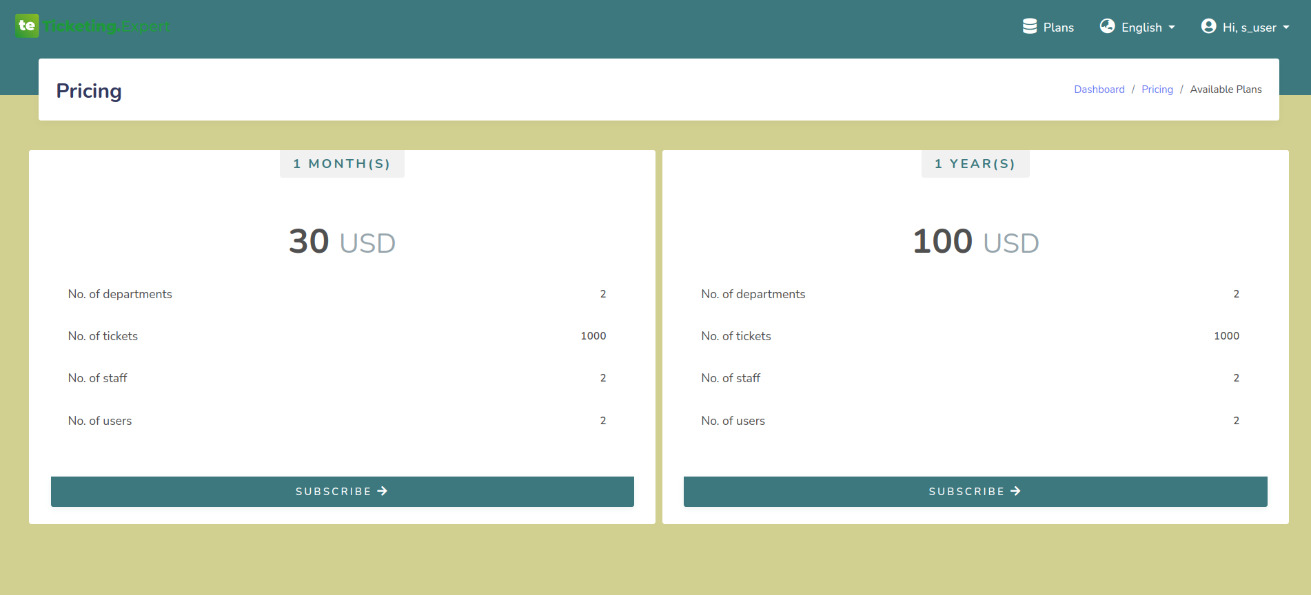 User should subscribe to a plan in-order to use the features of Ticketing Expert.