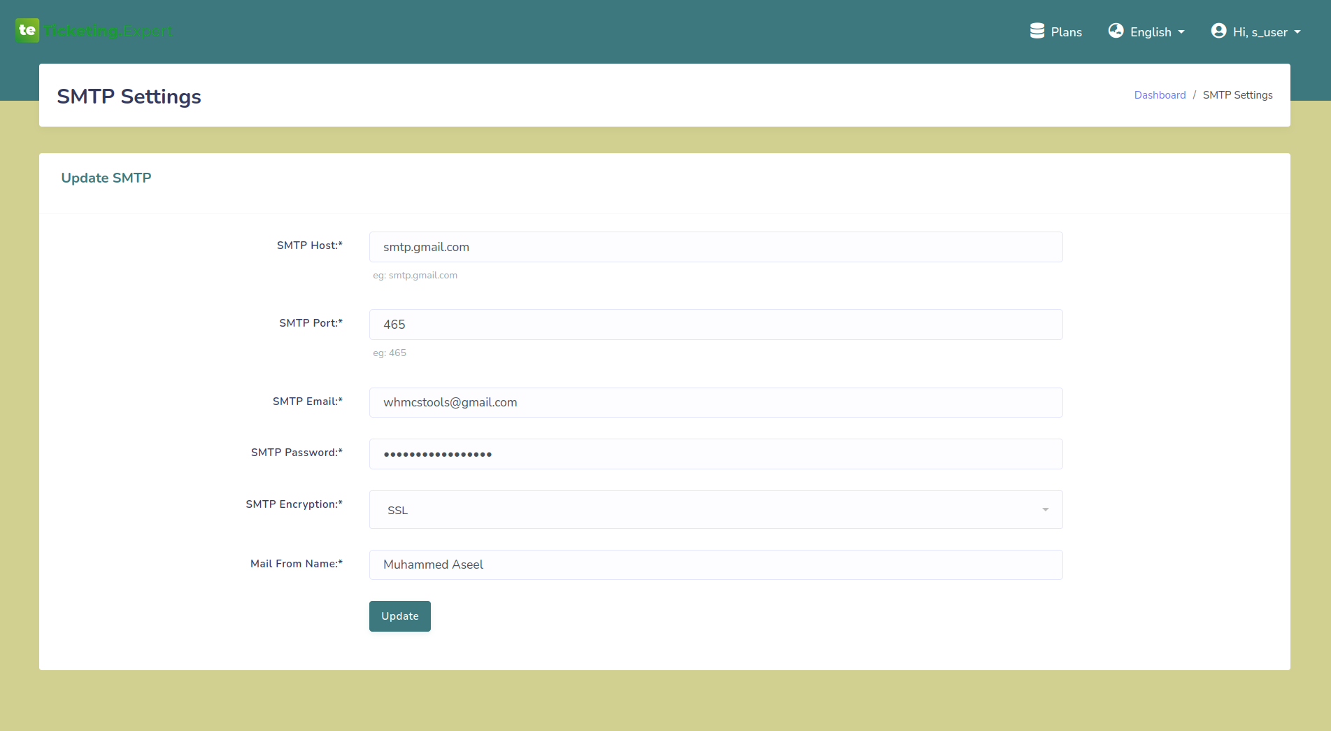 After clicking on SMTP update link, the user will be redirected to a page as shown above.